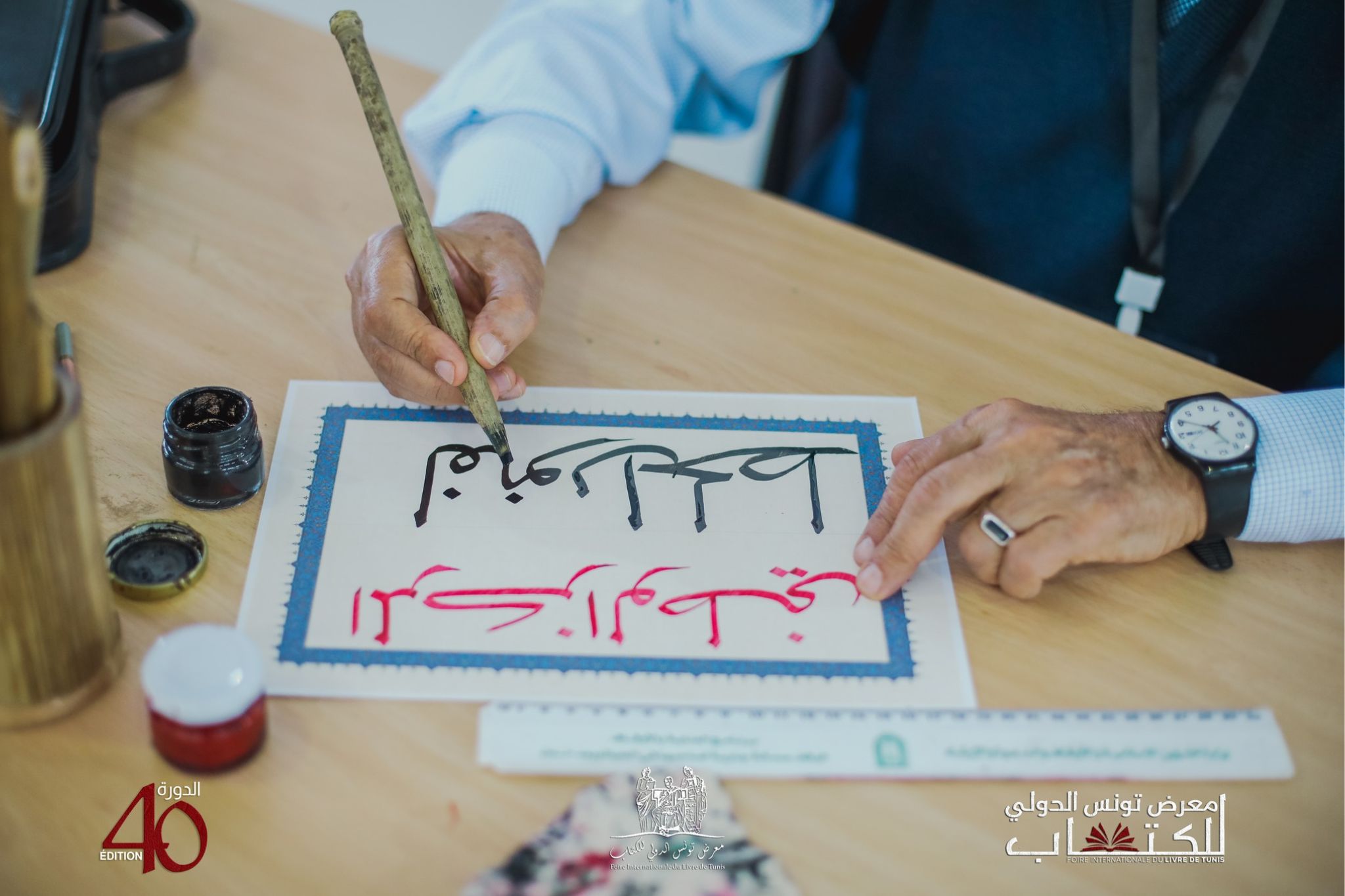 Dans une déclaration à l’Agence TAP, le directeur du Centre, Yassine Mokrani, a indiqué que cette exposition a été spécialement conçue pour s’inscrire dans le cadre de la participation du Centre à cette FILT, dont l’orientation générale est consacrée à la calligraphie arabe. Il a précisé que le public peut y admirer 40 œuvres réparties en deux volets avec une première partie comprenant près de 20 créations sur différents supports tels que le cuir, le verre, la céramique et divers types de papier, et 20 autres œuvres exposées au Pavillon du ministère des Affaires culturelles.