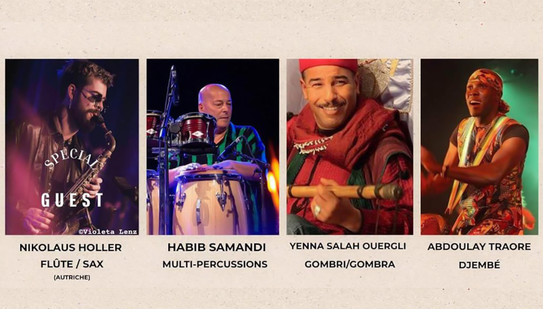 À leurs côtés, le jazzman autrichien Nikolaus Holler, invité dans le cadre d’une coopération culturelle avec l’ambassade d’Autriche en Tunisie, apportera les sonorités du saxophone et de la flûte traversière à cet univers rituel.