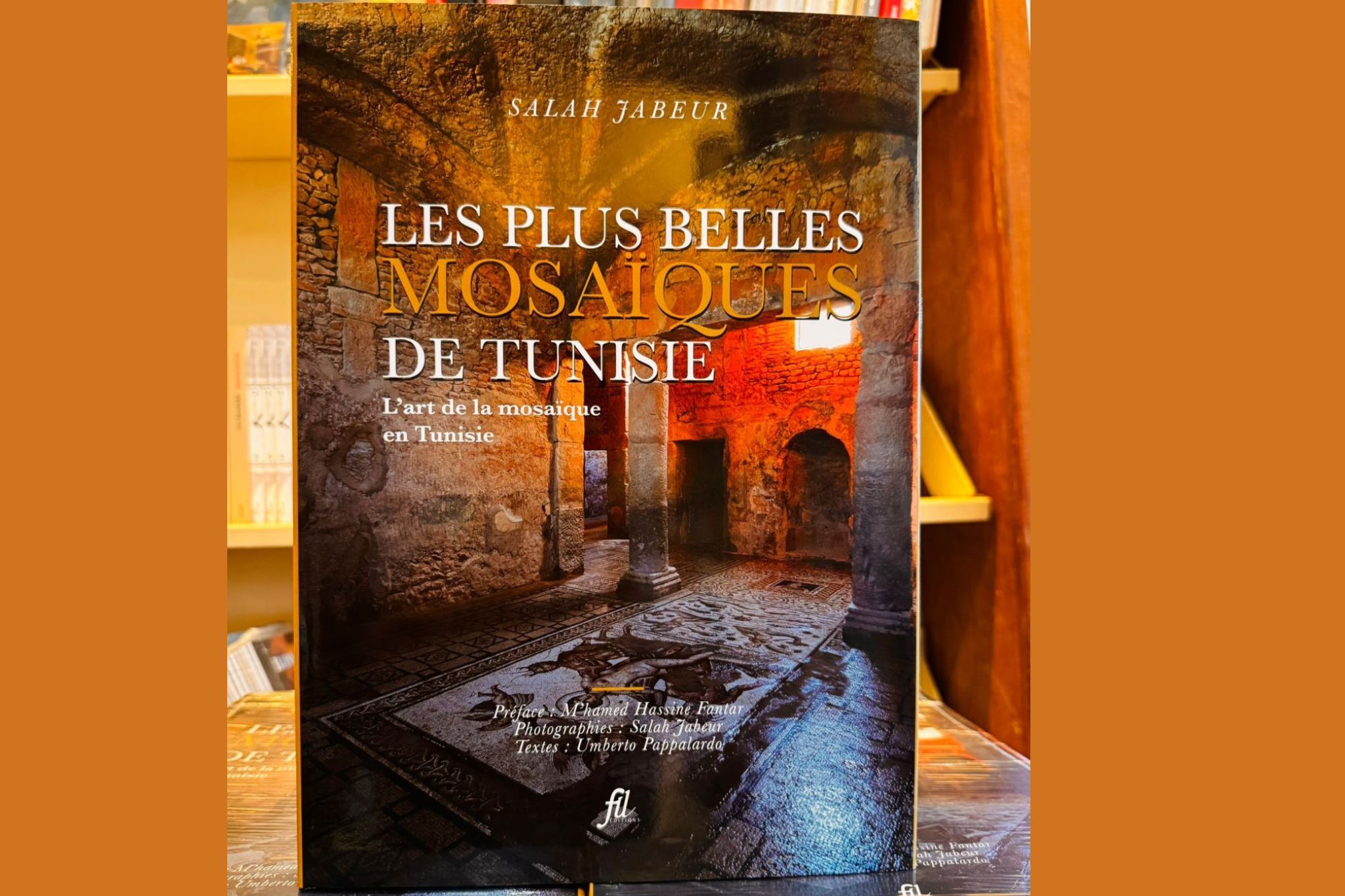 A travers l’objectif du photographe Salah Jabeur et la trame narrative de l’archéologue italien Umberto Pappalardo, l’ouvrage propose une lecture visuelle et narrative de la mosaïque tunisienne, enrichie par une préface de l’historien tunisien M’hamed Hassine Fantar.