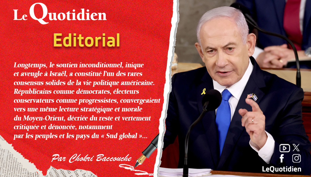 Longtemps, le soutien inconditionnel, inique et aveugle à Israël, a constitué l’un des rares consensus solides de la vie politique américaine. Républicains comme démocrates, électeurs conservateurs comme progressistes, convergeaient vers une même lecture stratégique et morale du Moyen-Orient, décriée du reste et vertement critiquée et dénoncée, notamment par les peuples et les pays du « Sud global ».