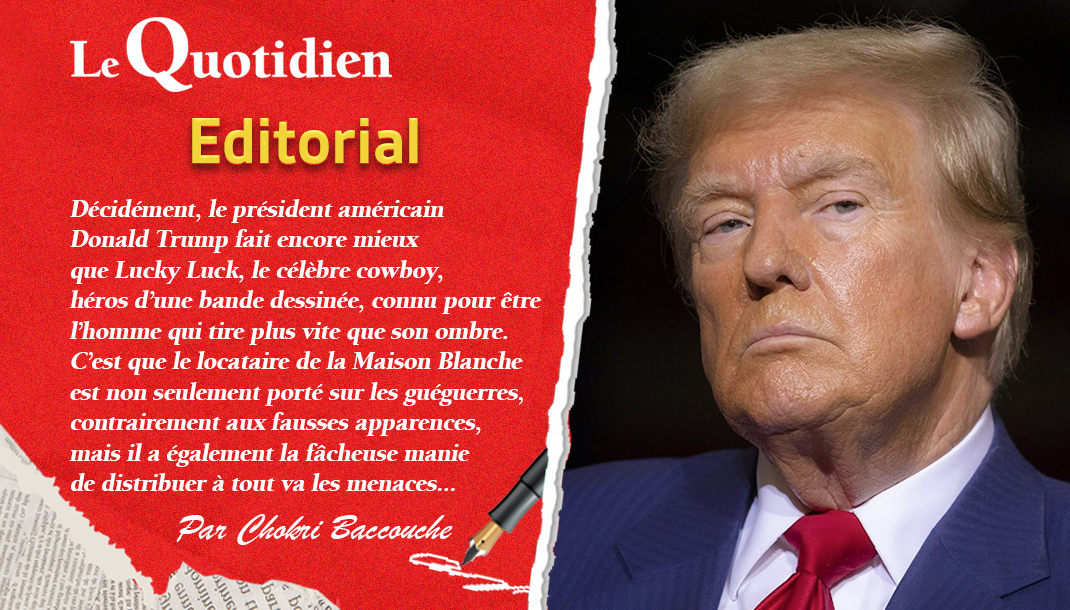 Décidément, le président américain Donald Trump fait encore mieux que Lucky Luck, le célèbre cowboy, héros d’une bande dessinée, connu pour être l’homme qui tire plus vite que son ombre. C’est que le locataire de la Maison Blanche est non seulement porté sur les guéguerres, contrairement aux fausses apparences, mais il a également la fâcheuse manie de distribuer à tout va les menaces.