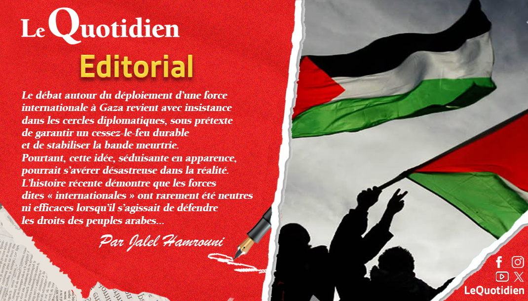 Gaza n’a pas besoin d’être placée sous tutelle étrangère. Elle a besoin d’être protégée par ses frères. Une force internationale, dictée par les intérêts des puissances occidentales, serait fatale : elle gèlerait le conflit sans jamais le résoudre, consacrerait l’occupation et priverait les Palestiniens de leur droit à l’autodétermination. En revanche, une présence arabe concertée serait le premier pas vers une paix juste, enracinée dans la solidarité, la dignité et la justice.