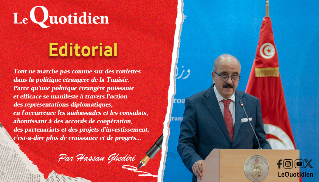 Tout ne marche pas comme sur des roulettes dans la politique étrangère de la Tunisie. Parce qu’une politique étrangère puissante et efficace se manifeste à travers l’action des représentations diplomatiques, en l’occurrence les ambassades et les consulats, aboutissant à des accords de coopération, des partenariats et des projets d’investissement, c’est-à-dire plus de croissance et de progrès.