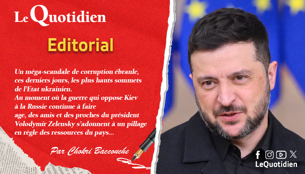 Un méga-scandale de corruption ébranle, ces derniers jours, les plus hauts sommets de l’Etat ukrainien. Au moment où la guerre qui oppose Kiev à la Russie continue à faire rage, des amis et des proches du président Volodymir Zelensky s’adonnent à un pillage en règle des ressources du pays. L’Office national anti-corruption leur reproche en effet d’avoir amassé quelque 100 millions de dollars, et ce, en contraignant les fournisseurs de compagnies publiques d’énergie à leur verser des pots de vin. Les enquêteurs révèlent ainsi l’existence d’une véritable organisation criminelle de haut niveau opérant notamment dans les secteurs très lucratifs de l’énergie et de la défense et dont les membres ne ratent aucune occasion pour se sucrer au passage et se remplir illicitement les poches..