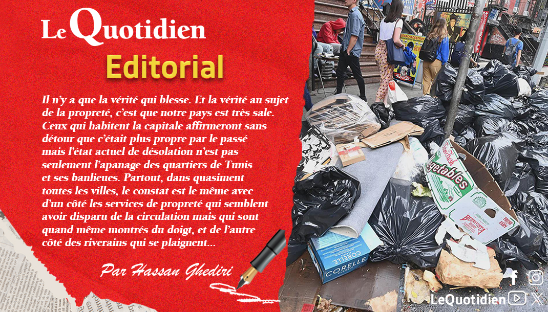 Il n’y a que la vérité qui blesse. Et la vérité au sujet de la propreté, c’est que notre pays est très sale. Ceux qui habitent la capitale affirmeront sans détour que c’était plus propre par le passé mais l’état actuel de désolation n’est pas seulement l’apanage des quartiers de Tunis et ses banlieues. Partout, dans quasiment toutes les villes, le constat est le même avec d’un côté les services de propreté qui semblent avoir disparu de la circulation mais qui sont quand même montrés du doigt, et de l’autre côté des riverains qui se plaignent.