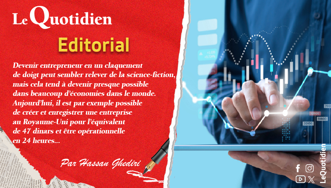 Devenir entrepreneur en un claquement de doigt peut sembler relever de la science-fiction, mais cela tend à devenir presque possible dans beaucoup d’économies dans le monde. Aujourd’hui, il est par exemple possible de créer et enregistrer une entreprise au Royaume-Uni pour l’équivalent de 47 dinars et être opérationnelle en 24 heures.