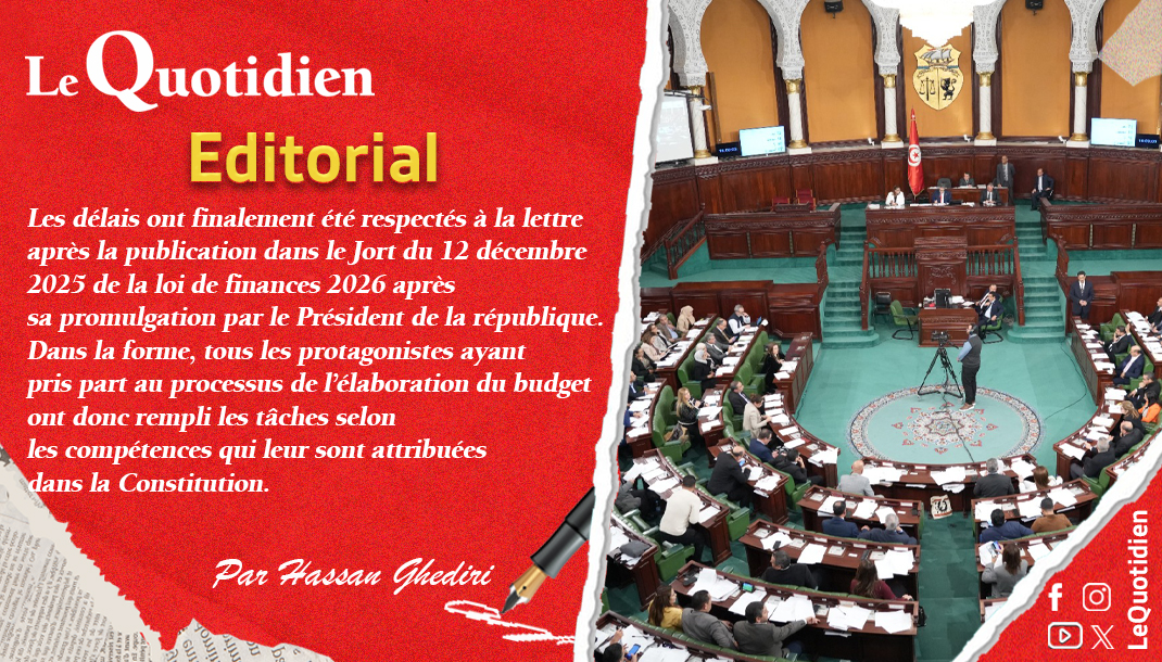 Les délais ont finalement été respectés à la lettre après la publication dans le Jort du 12 décembre 2025 de la loi de finances 2026 après sa promulgation par le Président de la république. Dans la forme, tous les protagonistes ayant pris part au processus de l’élaboration du budget ont donc rempli les tâches selon les compétences qui leur sont attribuées dans la Constitution.