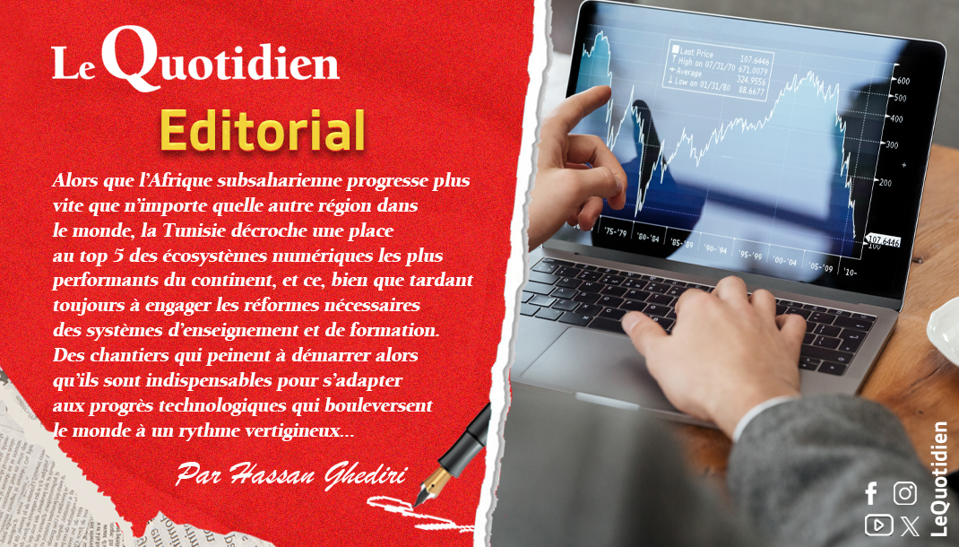 Alors que l’Afrique subsaharienne progresse plus vite que n’importe quelle autre région dans le monde, la Tunisie décroche une place au top 5 des écosystèmes numériques les plus performants du continent, et ce, bien que tardant toujours à engager les réformes nécessaires des systèmes d’enseignement et de formation. Des chantiers qui peinent à démarrer alors qu’ils sont indispensables pour s’adapter aux progrès technologiques qui bouleversent le monde à un rythme vertigineux.