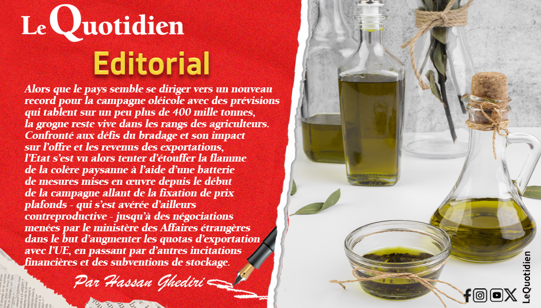 Alors que le pays semble se diriger vers un nouveau record pour la campagne oléicole avec des prévisions qui tablent sur un peu plus de 400 mille tonnes, la grogne reste vive dans les rangs des agriculteurs.