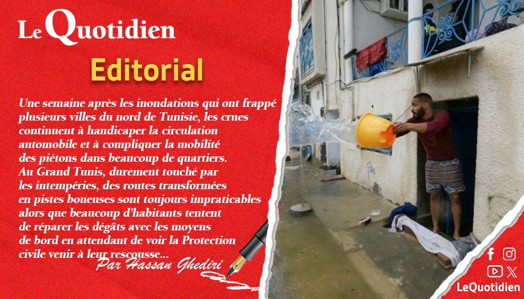 Une semaine après les inondations qui ont frappé plusieurs villes du nord de Tunisie, les crues continuent à handicaper la circulation automobile et à compliquer la mobilité des piétons dans beaucoup de quartiers.