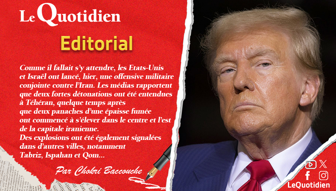 Comme il fallait s’y attendre, les Etats-Unis et Israël ont lancé, hier, une offensive militaire conjointe contre l’Iran. Les médias rapportent que deux fortes détonations ont été entendues à Téhéran, quelque temps après que deux panaches d’une épaisse fumée ont commencé à s’élever dans le centre et l’est de la capitale iranienne. Des explosions ont été également signalées dans d’autres villes, notamment Tabriz, Ispahan et Qom.
