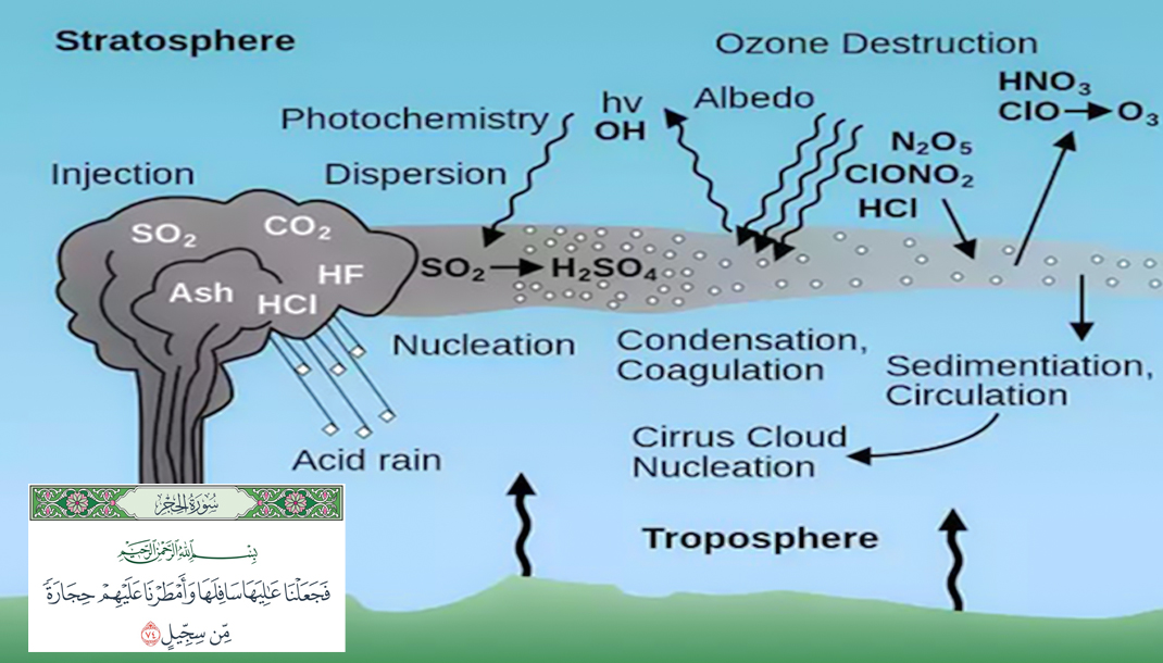 Cette signature chimique particulière, qui transforme le ciel en un milieu hostile et toxique, trouve un écho saisissant dans les récits eschatologiques et historiques du Coran, notamment à travers le récit du peuple de Lot. En examinant la convergence entre la terminologie géologique moderne et les descriptions scripturaires de « pluies de pierres » et de « pluies affreuses », on découvre une précision narrative qui semble anticiper la compréhension actuelle des cataclysmes volcaniques.